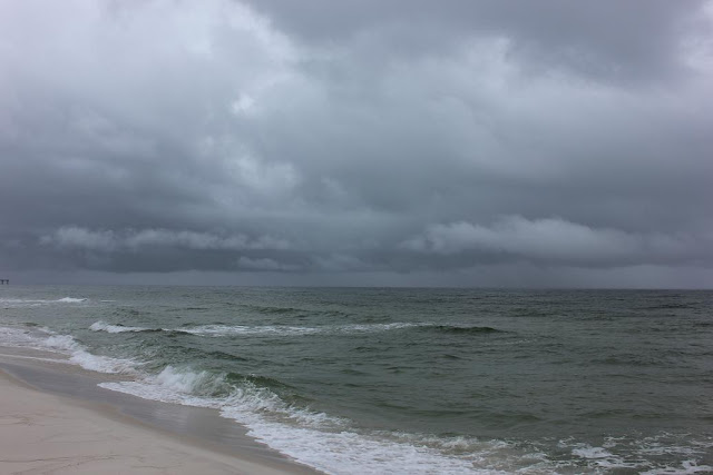 Good rainy afternoon.  Hope those who had school today had a great first day!  It is rainy out here on Pensacola Beach.  The waves haven’t bumped up yet but they aren’t really supposed to until 4 or 5 pm today.  They are still running knee to thigh and sometimes…sometimes a hip set. The winds are almost non-existent out of the NE causing for glassy conditions. Hopefully we can have some better surf by sunset.  I am going to grab my board…(why not?) and head out.  As for my pictures, they aren’t blurry…it’s raining.