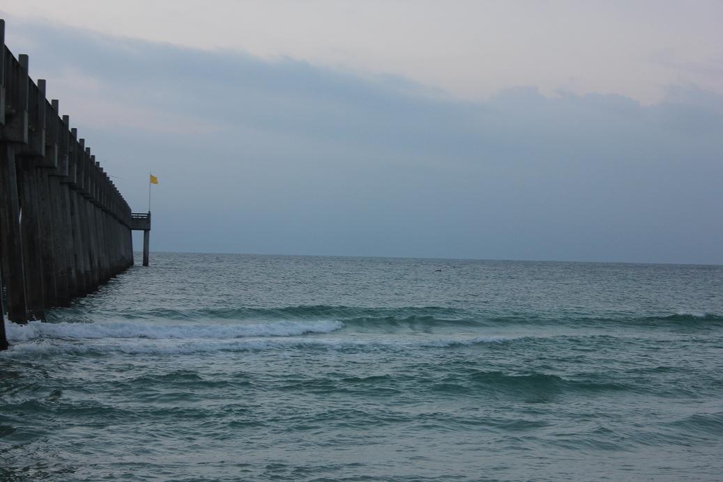 Good morning. It’s a windy morning at the beach. The wind is blowing out of the NE at 8-10 mph with stronger gusts. The surf isn’t what I hoped for. It’s only running ankle to shin high at most places but the left side of the pier has a thigh peak come through ever so often. We will give you AJ updated report at midday. Have an awesome Friday!