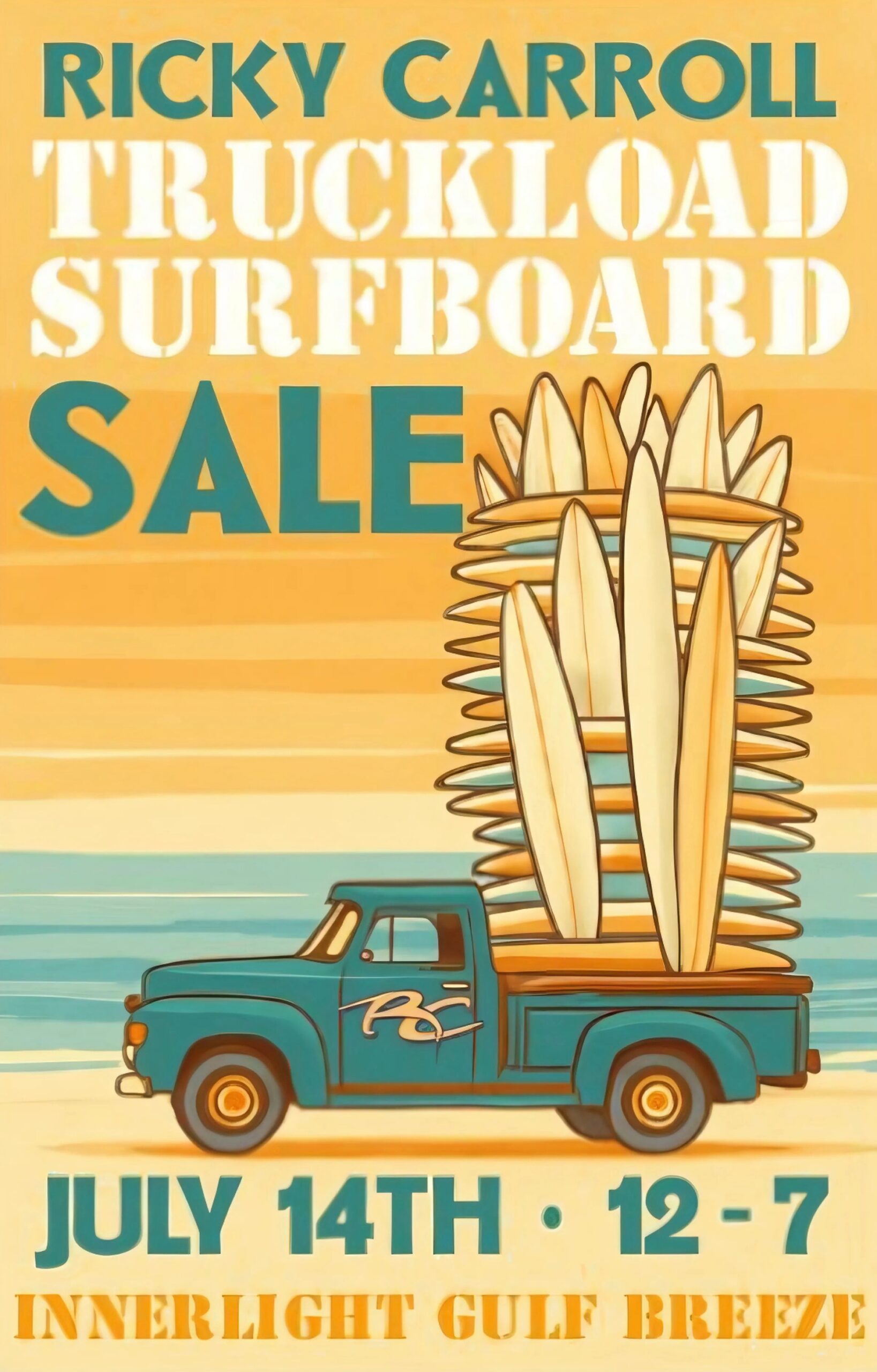 East Coast shaping legend Ricky Carroll will be doing a truckload surfboard sale at our GB shop, July 14, 12 to 7!!