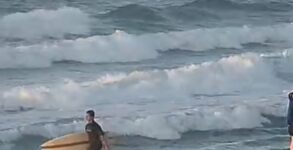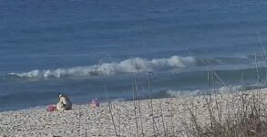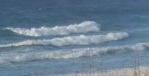 Good morning surfers. It’s 65° and sunny on the beach with an east wind blowing 8 to 10 maybe 12 mph. They surf once again