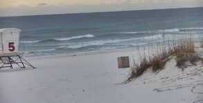 Good morning surfers! It is a beautiful morning out here on Pensacola Beach with sunny skies and air temperatures hovering around 60 degrees with a